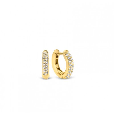 Kolczyki kółka, wykonane ze srebra pr. 925 pokrytego złotem, wysadzane cyrkoniami.