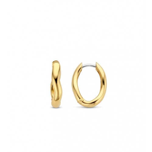 Pozłacane srebrne obręcze TI SENTO - Milano 7882SY mają niedoskonały, pomarszczony kształt. Te pozłacane kolczyki są wykonane ze srebra próby 925. Noś te wyrafinowane podstawy samodzielnie lub połącz je z wyrazistymi kolczykami.