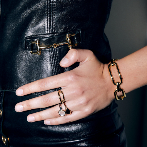 Wygląda jak ogniwo łańcucha, pierścionek jest wykonany ze srebra próby 925 i pokryty grubą warstwą rodu, aby go chronić i zachować jego blask.