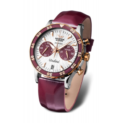 Zegarek damski na skórzanym pasku Vostok Europe Undine Chronograph VK64-515E567
