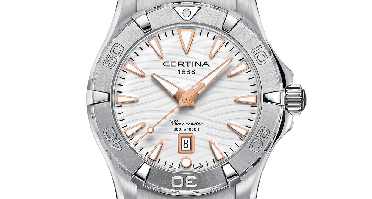 Przedstawiany model Certina jest opisywany jako świetna alternatywa dla kobiet uprawiających sporty wodne. Zapewnia precyzję działania i wodoszczelność przy ciśnieniu do 30 bar (300 metrów). Z przeznaczeniem harmonizują stylowe detale, takie jak na przykład motyw delikatnej fali na tarczy i kopercie, który przyciąga spojrzenia innych.