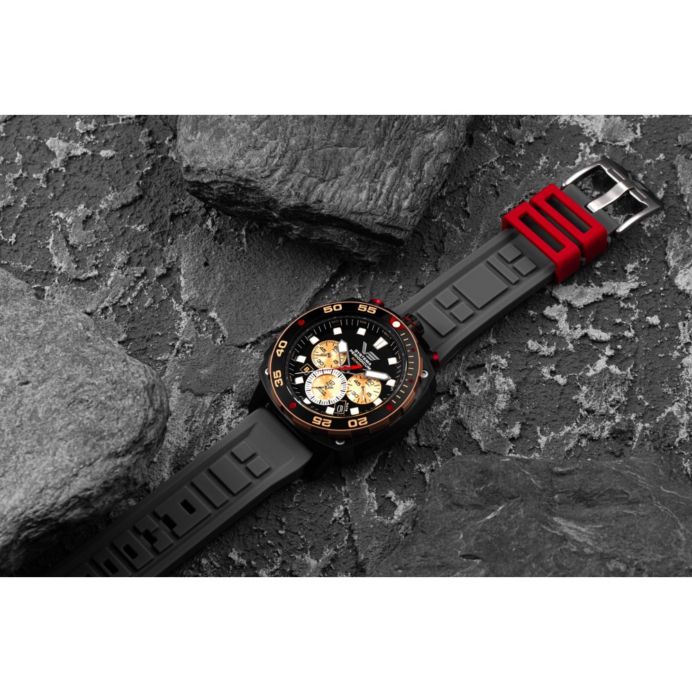 Każdy z modeli posiada kopertę typu bullhead (bycza głowa), która charakteryzuję się innym układem dwóch przycisków obsługujących chronograf oraz koronką, tutaj znajdują się one na górze koperty.  Wokół szkła mineralnego K1, znaleźć można obrotowy bezel dla nurków wykonany ze spieków ceramicznych z dodatkiem cyrkonu- bezele z ceramiki nie tylko pięknie wyglądają ale są też niezwykle trwałe i odporne na zarysowania.  Koperta o szerokości 48mm i grubości 15,6mm, została wykonana ze stali szlachetnej, bardzo odpornej na korozję oraz czynniki zewnętrzne.