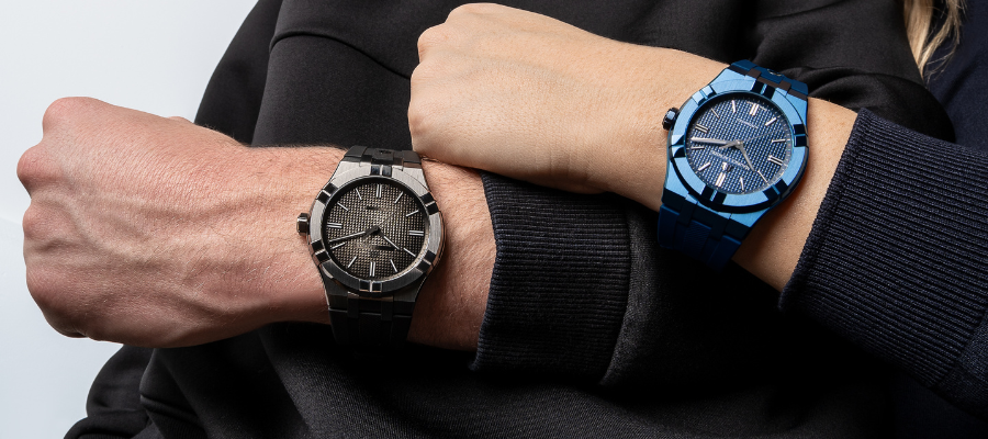 Jedna wersja zegarka dostępna jest w odcieniu głębokiego granatu z kopertą o średnicy 39mm, zaś druga wersja charakteryzuje sie metalowo-szarą barwą o nazwie Gunmetal oraz kopertą o średnicy 42mm. Obydwa zegarki są pokryte powłoką PVD, która w różnych warunkach oświetleniowych prezentuje urzekający metaliczny połysk.