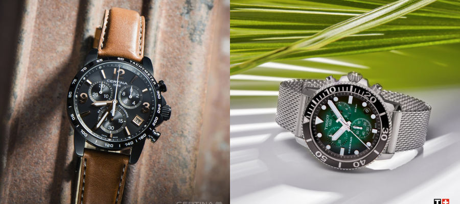 * Chronograf- potocznie „stoper”. Na cyferblacie zegarka występują zazwyczaj trzy małe dodatkowe tarcze, każda wyposażona w osobną, malutką wskazówkę. Chronograf najczęściej odmierza, minuty, sekundy i dziesiętne sekund. Chronograf obsługiwany jest przez dwa dodatkowe przyciski umieszczone w sąsiedztwie koronki.