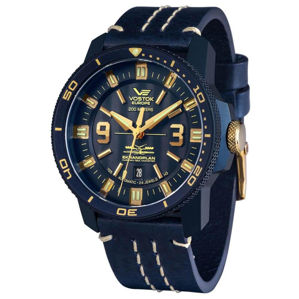 Zgodnie z nadal panującą modą na duże zegarki Vostok przygotował prawdziwego „Caspian Sea Monster”. Zegarek wyposażony w kopertę o średnicy 47,5 mm, 16 mm grubości oraz designie upamiętniającym historycznego Kaspijskiego potwora jakim był Ekranoplan przyciąga uwagę zachowując jednocześnie elegancki styl.Za jego stabilne mocowanie na nadgarstku odpowiada ciekawie przeszyty szeroki na aż 25 mm przy uszach pasek ze skóry,świetnie układający się na ręku.