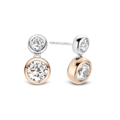 Kolczyki wkrętki, wykonane ze srebra rodowanego pr. 925 pokrywanego różowym złotem z cyrkoniami.