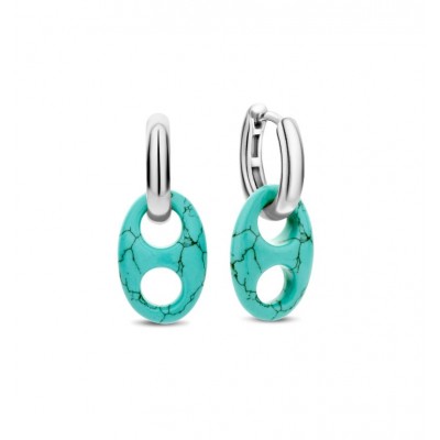 Kolczyki z rodowanego srebra (próby 925) zdobione turkusem o niebanalnym kształcie ziarenka kawy. Połącz te luksusowe ikony z innymi kolczykami, aby stworzyć swoją własną wyjątkową biżuterię.
