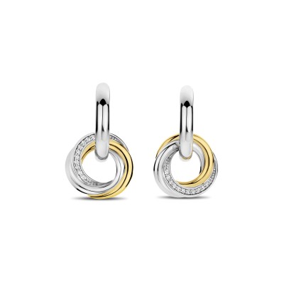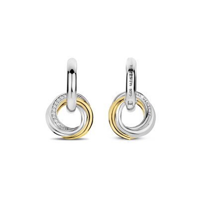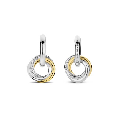Kolczyki wykonane ze srebra pr. 925, częściowo pokryte złotem oraz cyrkoniami.