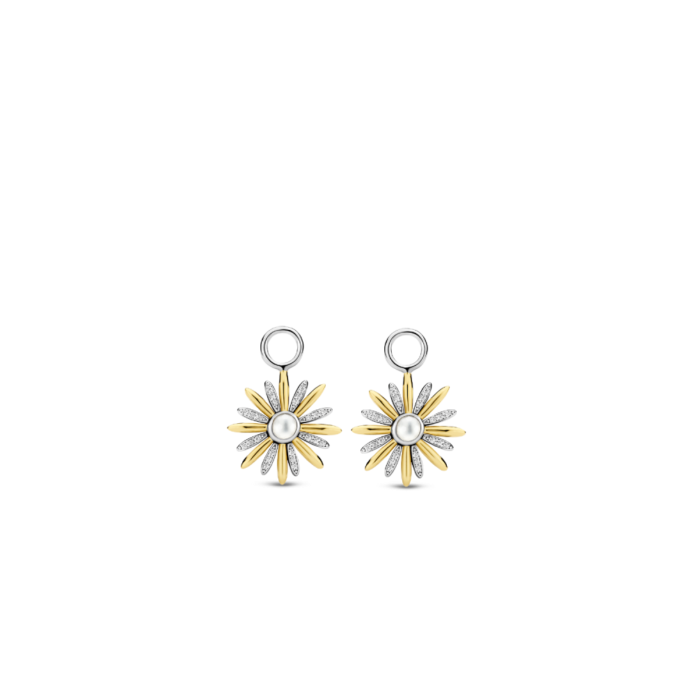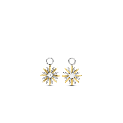 Zawieszki do kolczyków Ti Sento 9242ZY wykonane ze srebra rodowanego, częściowo pokryte żółtym złotem. Charakteryzują się eleganckim kształtem gwiazdy z pozłacanymi i pavé promieniami z kremowym kamieniem z masy perłowej. Zawieś je na swoich ulubionych kółeczkach i pozwól im wnieść odrobinę światła i energii do Twojego wyglądu.